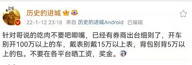 金融从业者薪酬问题历来是吃瓜群众的“谈资”,上述“行为准则”一出,再次把券业人士薪酬问题推到聚光灯下。微博大V @历史的进城发文点评,“吃肉不要吧唧嘴,已有券商出台细则了,开车别开100万以上的车,戴表别戴15万以上的表,背包别背5万以上的包。不要在各平台晒工资、奖金。”