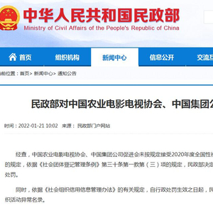 同时,依据《社会组织信用信息管理办法》的有关规定,自行政处罚生效之日起,民政部将中国农业电影电视协会、中国集团公司促进会列入社会组织活动异常名录。