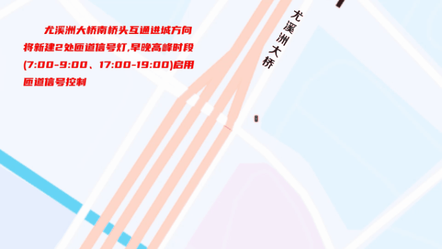 届时,尤溪洲大桥南桥头互通进城方向将新建2处匝道信号灯:浦上大道进城匝道和桥下路口上桥匝道。建成后,早晚高峰时段启用匝道信号控制,浦上大道进城匝道实行两车道交替绿灯通行。