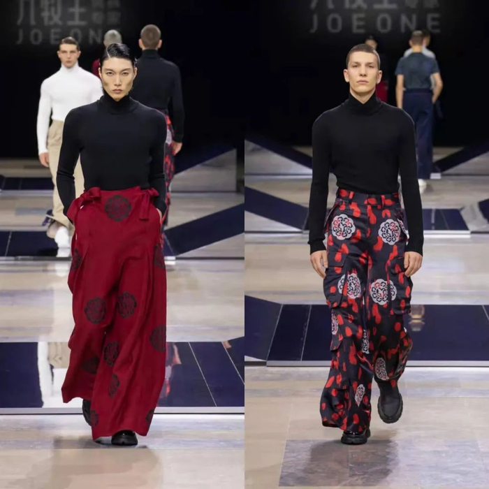 北京时间2022年1月22日,临近春节之际,九牧王联合前杰尼亚设计师、现任九牧王创意总监Louis-Gabriel NOUCHI(路易·加布里埃尔·努奇)在巴黎时装周上演了具有唐风华韵的男装裤秀。此次巴黎时装周裤秀,九牧王以盛唐文化为灵感起源,选取了宝相花、卷草纹、唐三彩等极具唐文化特色的核心元素,进行重新解构设计,融入了现代男裤服饰。九牧王通过巴黎时装周裤秀,表达了民族品牌对中华民族文化的推崇和致敬,并努力在国际时尚舞台向世界展现中国文化的魅力。