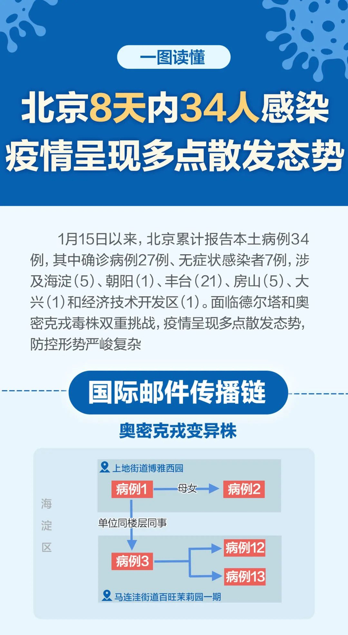 北京本轮疫情涉及两个不同感染来源,一个是国际邮件引发的聚集性疫情,为奥密克戎变异株关联疫情;另一个就是由进口冷链物品引发的聚集性疫情,为德尔塔变异株关联疫情。