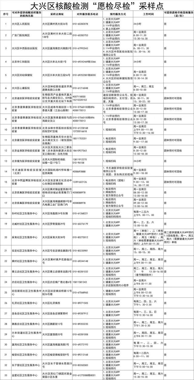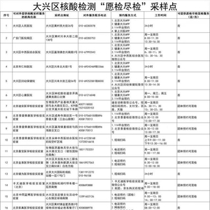 北京大兴区“愿检尽检”核酸采样点增至40余个,一表尽览