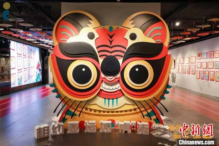 中新网杭州1月23日电 (王题题)用艺术实践,启迪孩子发现“美”。1月22日,相约亚运 如“虎”添“艺”——虎生肖绘画大赛优秀作品展于浙江杭州开幕,来自中国各地的155幅优秀作品于此亮相。
