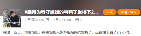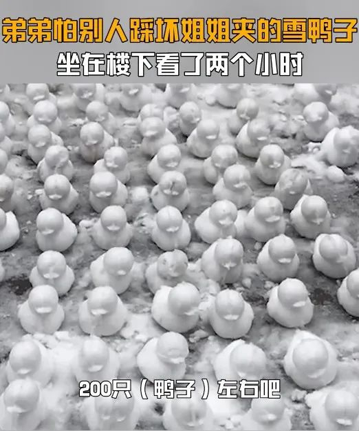 原标题:弟弟为看守姐姐的雪鸭子,坐楼下2小时!网友:我弟一脚一个……