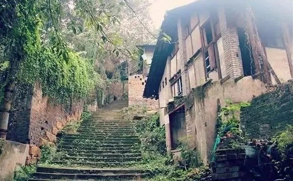 路过一幢一楼一底的老建筑,不知名的藤蔓几经疯长,爬满了外墙,几扇破破烂烂的彩色百叶窗,虽显得摇摇欲坠,但依稀可见当年的富贵之气;长长的一道院墙,坑坑洼洼,苔藓密布。只有那棵高大的黄桷树,还枝繁叶茂地生长着,似在述说曾经的朱门绣户、宾客盈门。