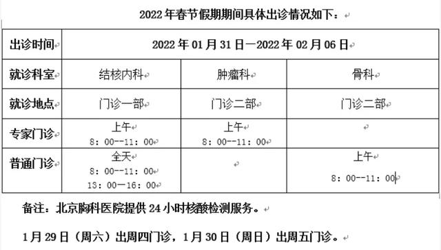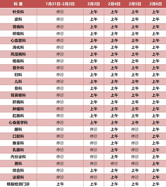 3。 外科:2022年1月31日至2月6日(三十至初六)普通门诊全天应诊,专家上午半日门诊。专业门诊以当日为准。
