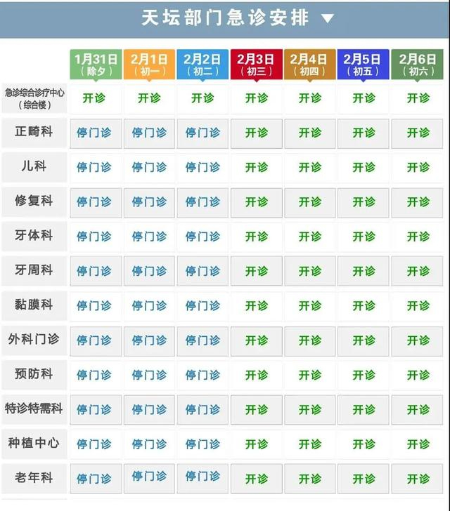 1月31日(除夕)至2月2日(初二),医院全天停门诊;