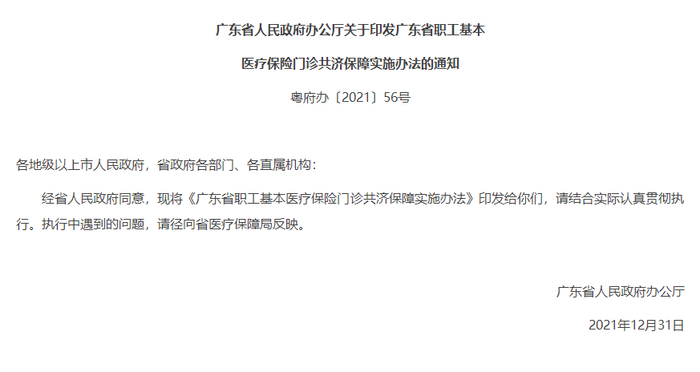 近日,广东省人民政府办公厅发布《广东省职工基本医疗保险门诊共济保障实施办法》,《办法》明确了职工医保门诊共济保障待遇政策,以及职工医保个人账户可用于支付参保人员本人及其配偶、父母、子女费用的六大就医情况。《办法》自2021年12月31日起施行,有效期3年。