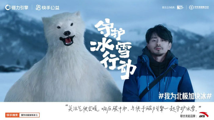 这是快手磁力引擎拍摄的一支公益宣传片。磁力引擎与快手公益联合新华网、中华环保联合会、安踏等机构和品牌,共同发起“我为北极加块冰”守护冰雪公益行动,号召全社会及品牌积极应对极地冰川融化问题,以实际低碳行动响应碳中和发展政策。