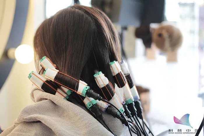 选择一缕头发进行烫发测试