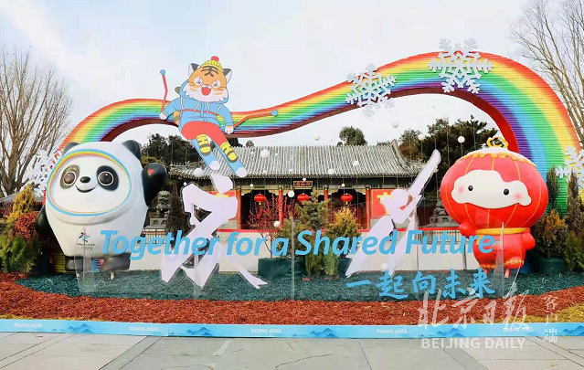据悉,北京市属公园迎冬奥庆春节环境布置以喜庆的中国红和冰雪迎冬奥元素为主基调,运用冬奥吉祥物冰墩墩、雪容融、雪花、冰丝带、园林标志建筑剪影、市属公园生肖吉祥物、春节祝福等多种元素,选用蓝粉云杉、龙柏球、大叶黄杨等耐寒植物丰富花坛的色彩和质感,并将园林废弃物加工处理成为花坛有机覆盖物,突出了北京冬日的冬奥、春节氛围和园林特色,体现了节约、环保的理念。市属公园门区、主要景区和游览线路设置的迎冬奥庆春节主题小品景观共64处,悬挂红灯笼 2万余个、中国结近1000个,布置道旗、彩旗1000余面,展板600余块。