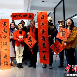 中新网南昌1月27日电 (李韵涵 程万海)“丑牛玉角双如意,寅虎金斑一彩头。”随着笔锋或抑或扬,一幅寓意吉祥的春联便跃然纸上,真诚的祝福洋溢在字里行间。