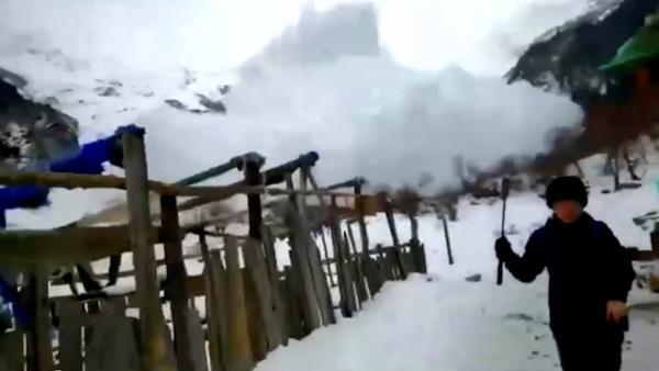云南雨崩神瀑附近雪崩画面曝光:游客边跑边拍
