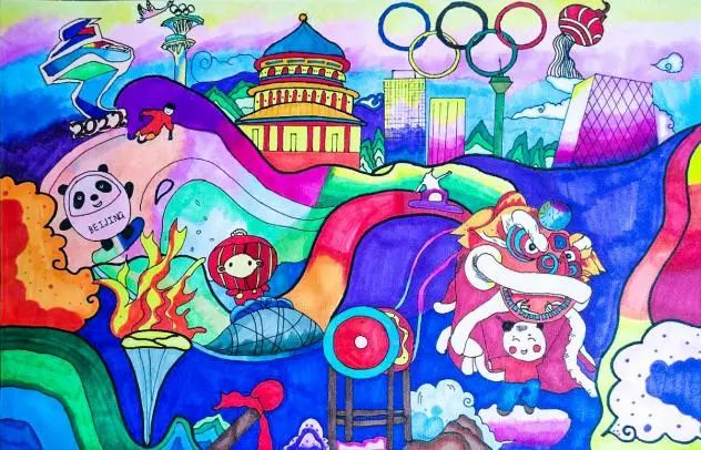 学生们通过绘画、书法、手工制作来表达对冬奥会的祝福,奥运五环、吉祥物“冰墩墩”、“雪容融”、万里长城都成了师生们制作冬奥作品的常用元素。