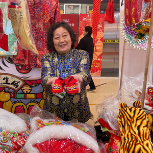 新京报讯(记者 耿子叶)虎年春节就要到了,67岁的蒋丽娟还没得空准备年货,这几天她一直忙着在商场里的“虎文化展”上摆摊,摊位上堆满了虎头鞋、虎头枕、虎头帽,虎文化氛围颇浓。