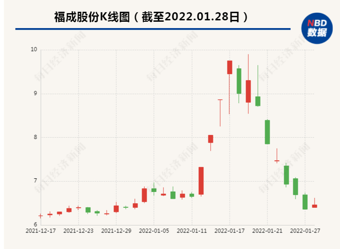 另值得注意的是,近期福成股份的股价大起大落。1月12日到1月17日涨幅约47%,一度收获四连板。但却在1月20日、1月21日和1月24日连续三个交易日回撤逾20%。