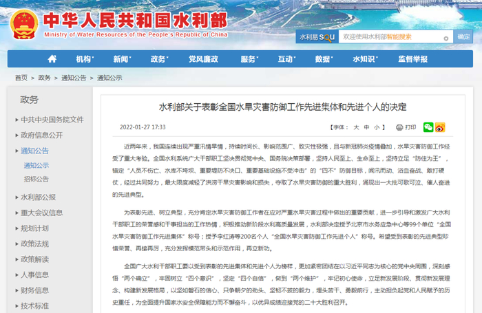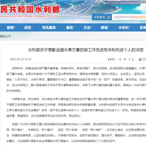 为表彰先进、树立典型,充分肯定水旱灾害防御工作者在应对严重水旱灾害过程中做出的重要贡献,进一步引导和激发广大水利干部职工的荣誉感和干事担当的工作热情,积极推动新阶段水利高质量发展,水利部决定授予99个单位“全国水旱灾害防御工作先进集体”称号;授予200名个人“全国水旱灾害防御工作先进个人”称号。黑龙江省下列集体和个人被水利部表彰。