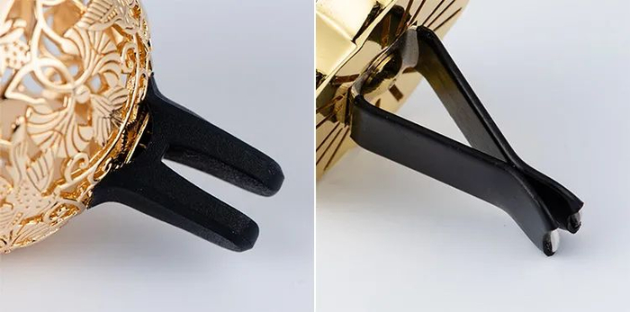 香薰采用嵌入式钢夹设计,安装简单,只需朝空调出风口叶片推入即可,而且不同车型均能匹配。