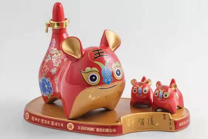洋河股份推出的 “财智虎”,在设计中充分运用了虎元素,设计灵感来自入选国家非遗项目的传统工艺品布老虎,造型淳朴可爱,每一个细节都充斥着中华文化的特有韵味。