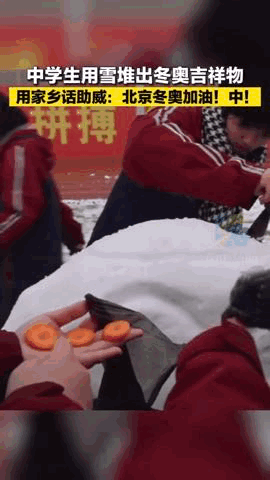 用雪堆出冬奥吉祥物,
