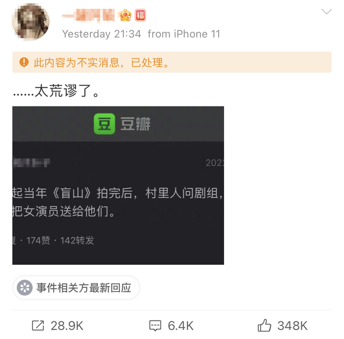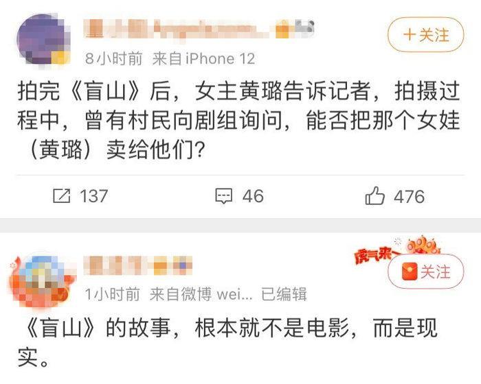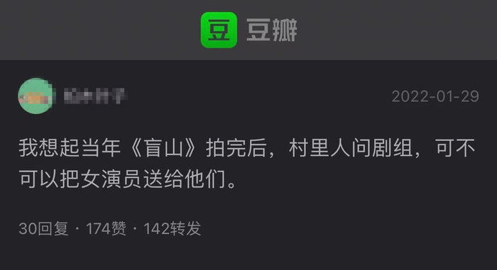 然而,近日,有网民在社交平台发文称:“我想起当年《盲山》拍完后,村里人问剧组,可不可以把女演员送给他们。”