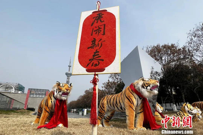 2022年1月31日,南京街头巷尾处处洋溢着浓浓的节日氛围,街头的“老虎”栩栩如生。中新社记者 泱波 摄