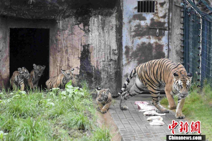 2020年9月,长沙生态动物园的华南虎“妈妈”和它的“宝宝们”。中新社记者 杨华峰 摄