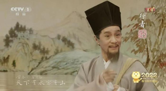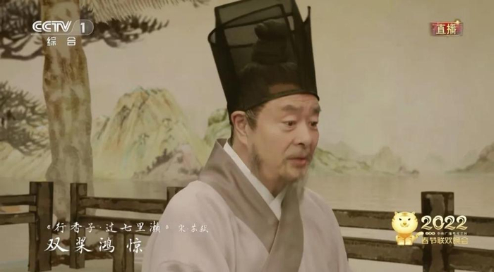 接下来,由阿云嘎扮演的渔父出场。作为歌手,他用歌声演绎了陆游的《鹊桥仙》。