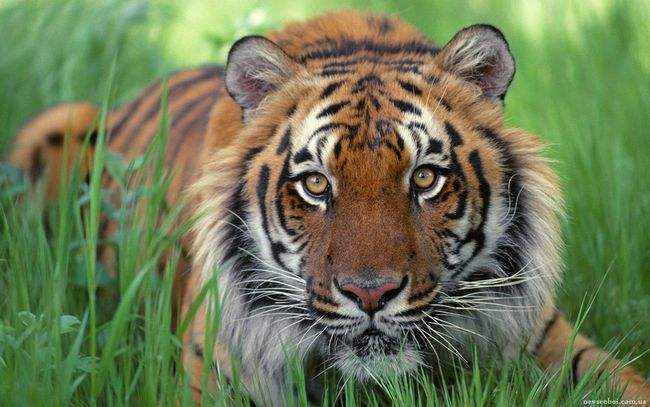 像鹿这样的陆地哺乳动物是老虎的主要猎物,而它们的二色视觉意味着在他们看来捕食者并不是橙色的——它们看到的是绿色的。这令老虎潜行在灌木丛中或蹲伏在草丛中时更难被发现。