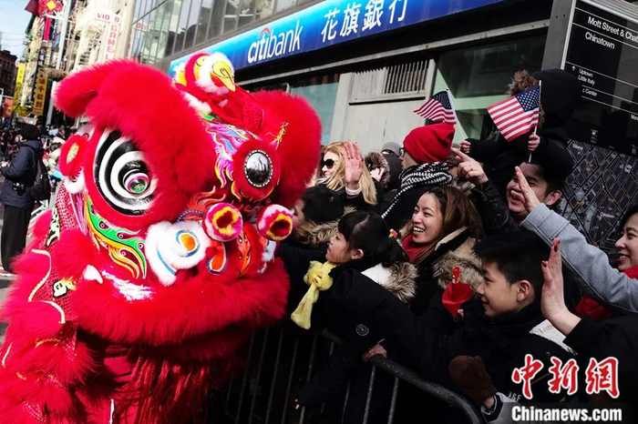 2019年2月,纽约曼哈顿唐人街举行第20届纽约新春爱心花车大游行庆祝中国春节,吸引各族裔民众夹道观赏。中新社记者 廖攀 摄