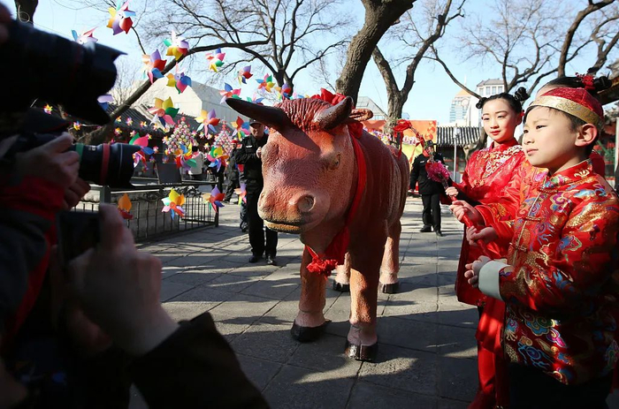 中国人重农时,在立春之日迎接春天的到来,祈祷新的一年农事顺利,会举行“打春牛”的活动。打的“牛”是用泥做成的春牛。现在,一些农村仍有打春牛的风俗。妇女们抱小孩绕春牛转三圈,旧说可以不患疾病,今已成为娱乐。