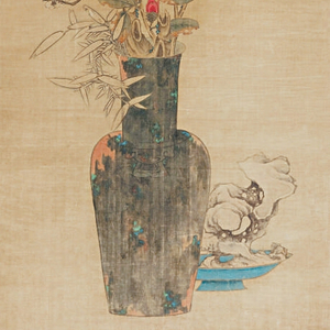 中国画领域,多有新春以清供入画的作品,也就是岁朝清供图。历朝历代画家都有代表作。印象最深的,元代钱选、明代陈洪绶,都有作品传世。陈洪绶的清供图最有特色,以铜器作为养花器皿。青铜的锈色,乍一看感觉古怪,越品越有隽永的气息。这几乎成为他画作的一种密码。