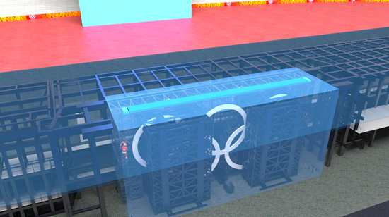 本次开幕式升起的奥运五环长达19米,高8.75米,厚度却仅有35厘米,依靠鸟巢上空的威亚系统提升并悬挂在半空,最终又缓缓沉入舞台之下。而尺寸的设计仅仅是个开始,由于鸟巢是开放式舞台,风力等气候因素也必须纳入考量。返回时,五环要准确落入“冰立方”上一道仅50厘米宽的槽内,也就是下落时摆动幅度不能超过7.5厘米。