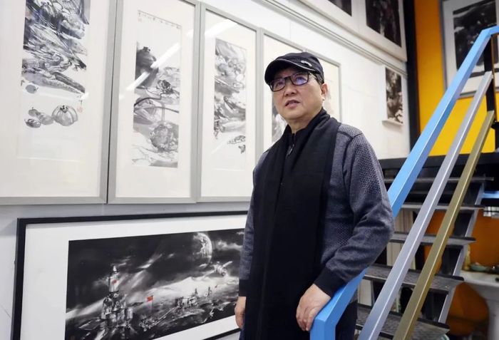 陈辉作品《中国文化》。作品尝试在中国画中加入光影。本人供图