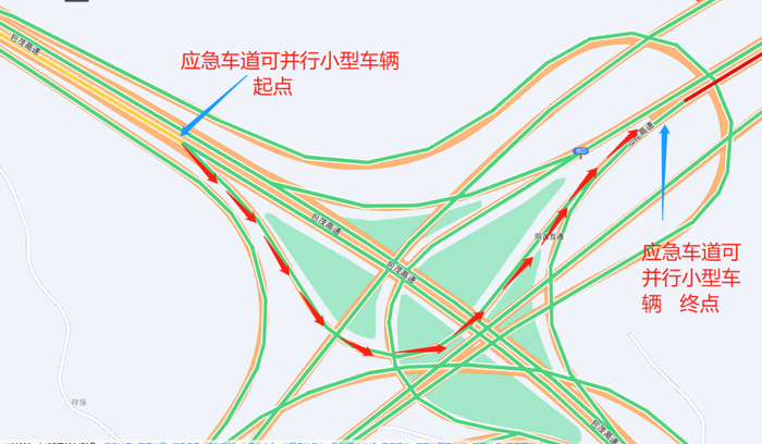 3、友爱双孖井路段封闭施工,仅有右侧辅路供电动车通行;明秀望州往五村岭方向、望州南路、金湾路口往五村岭方向主路段封闭施工,但是有部分作为辅路交付使用。