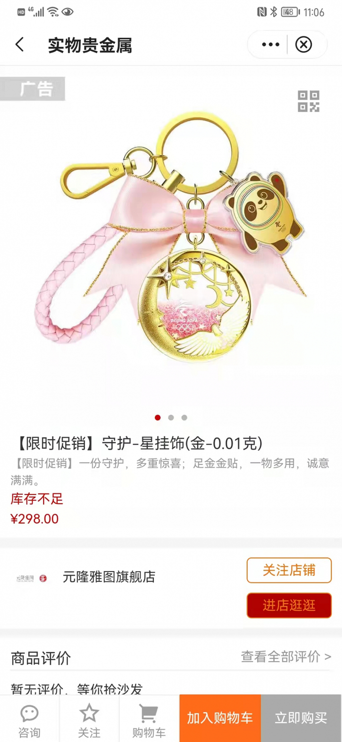 在中国银行APP我的积分中,可以凭积分兑换。目前,冰墩墩已经缺货,还有雪容融的帆布袋以及冬奥纪念保温杯可以兑换。不过在该行的实物贵金属中,还有黄金冰墩墩出售,价值数万。价格稍微亲民的298元的冰墩墩足金挂饰,目前已经售罄。