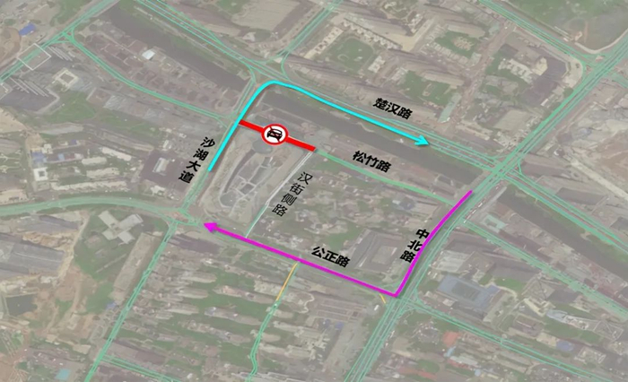 1.原松竹路由西向东的车辆建议绕行沙湖大道、楚汉路。