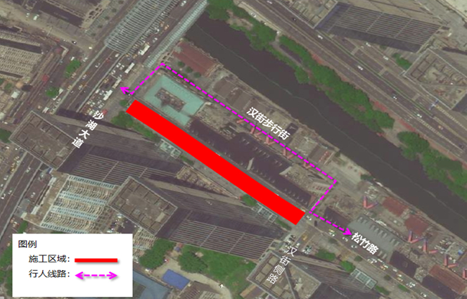 4.原需通行松竹路的行人可绕行汉街步行街。