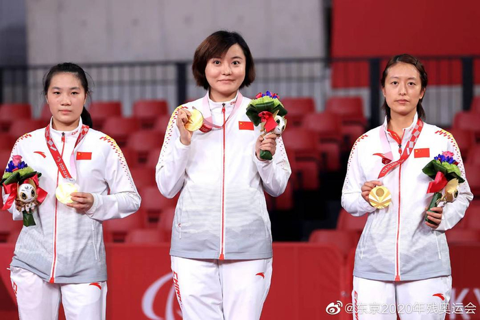东京残奥会上,茅经典、黄文娟、王睿(右一)组成的中国队以2-0击败荷兰队夺得金牌