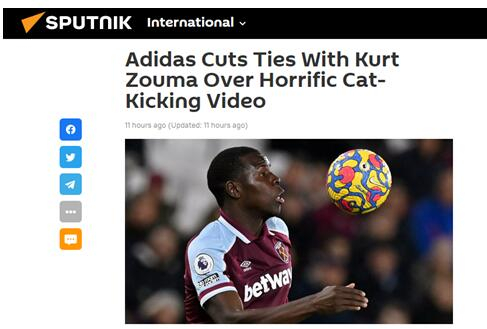 综合俄卫星通讯社、英国《太阳报》等多家外媒9日报道,一段令人震惊的视频近日持续在社交媒体上引发争议:视频显示,27岁的英超球星库尔特·祖玛踢打一只猫,虽然他事后为此道歉,但此事带来的负面舆论和影响持续,除被网友痛骂,英国警方还对祖玛发起调查,阿迪达斯也与他解约。