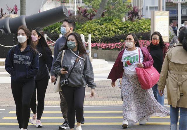 2月6日,香港市民佩戴口罩逛街。新华社图。