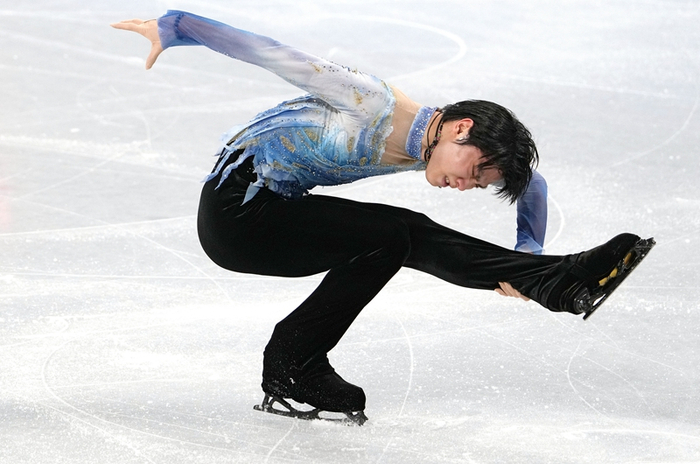 2月10日,在北京冬奥会花样滑冰男子单人滑自由滑决赛中,日本名将羽生结弦身穿蓝粉渐变色赛服,以水钻、金色花朵点缀其间,搭配黑金配色腰封,颇具日式风情。