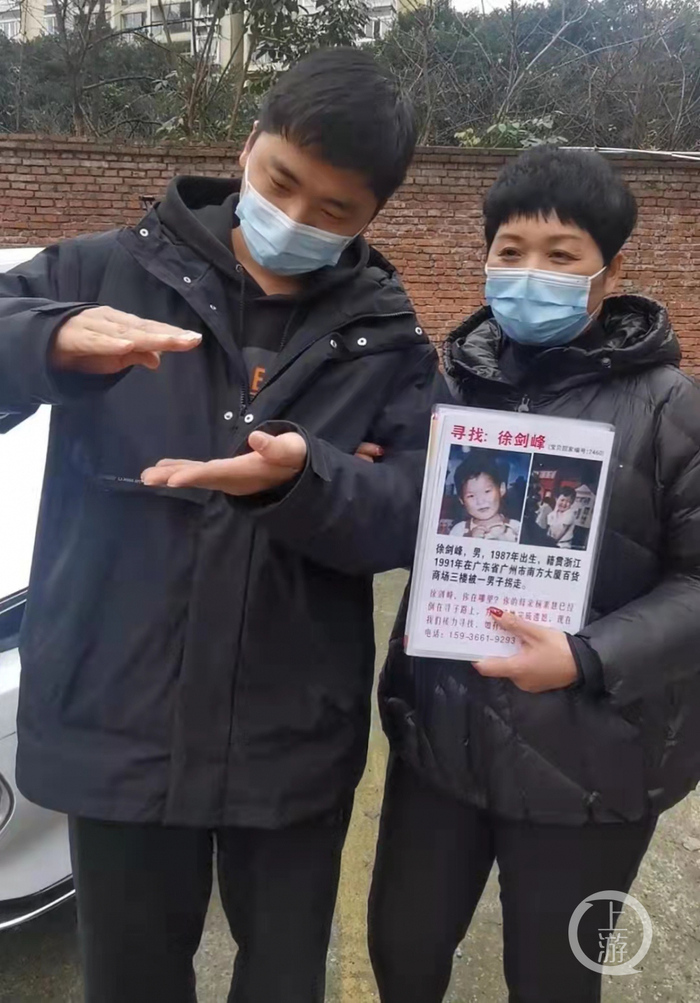 上游新闻记者现场采访了解到,李芳张洋洋母子相认后,并没有远离“寻亲”这个主题,而是当起了寻亲志愿者,帮助更多的寻亲家长。第一次当寻亲志愿者来到重庆的张洋洋,在陪同和帮助寻亲家长的同时,也分享起了自己春节回家被亲戚集体催婚的经过。“有点无奈,但家人的唠叨很幸福!”张洋洋说。