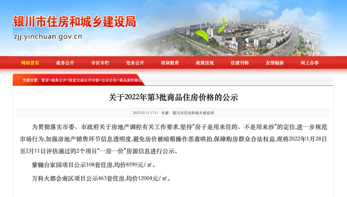 银川571套商品住房价格公示,最低均价8590元/㎡!