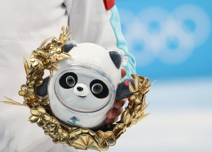 关注中国冬奥健儿表现的观众都注意到,谷爱凌、武大靖、任子威等获奖运动员都领到了金色冰墩墩。设计者表示,“在冰墩墩的周围,辅以松、竹、梅为主题编结而成的金色花环。松、竹、梅在中国又被称为 ‘岁寒三友 ’,寓意坚韧、顽强和旺盛的生命力。”这个特殊纪念品是为了表达对获奖运动员的称颂、敬意和美好祝福。