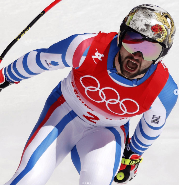法国高山滑雪运动员马蒂厄·费弗尔头盔上绘有大熊猫、龙、长城,还有近来网络热捧的锦鲤,令网友直呼“太懂中国!”