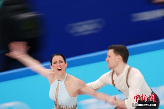 2月14日,北京2022年冬奥会花样滑冰冰上舞蹈自由舞比赛在首都体育馆举行。俄罗斯奥委会选手维多利亚·西尼齐娜/尼基塔·卡察拉波夫获得亚军。图为维多利亚·西尼齐娜(右)/尼基塔·卡察拉波夫在比赛中。 中新社记者 崔楠 摄