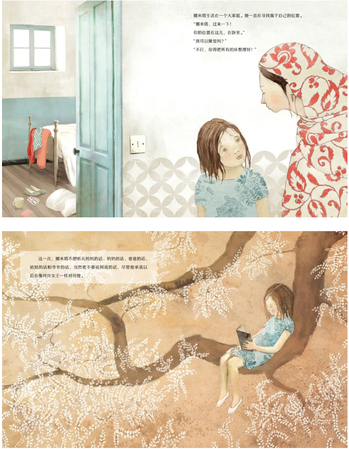 有一天,爷爷告诉她,她应该去学校打扫卫生。正是在学校,娜米塔开始了阅读,她不再迷茫自己的方向和位置,因为她深知“我的位置就是双脚能带我去的地方”。