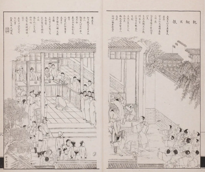 清代县衙审判中的妇女。图片出自《点石斋画报》。