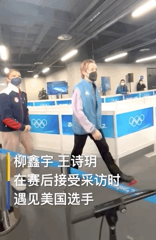 来自美国队的两位冰舞运动员,赛后偶遇正接受采访的中国队冰舞组合王诗玥和柳鑫宇,直接走上前来拥抱致意!他们曾长期和王诗玥、柳鑫宇一同训练,他们说:“你们是非常棒的运动员。我知道你们有多努力!”